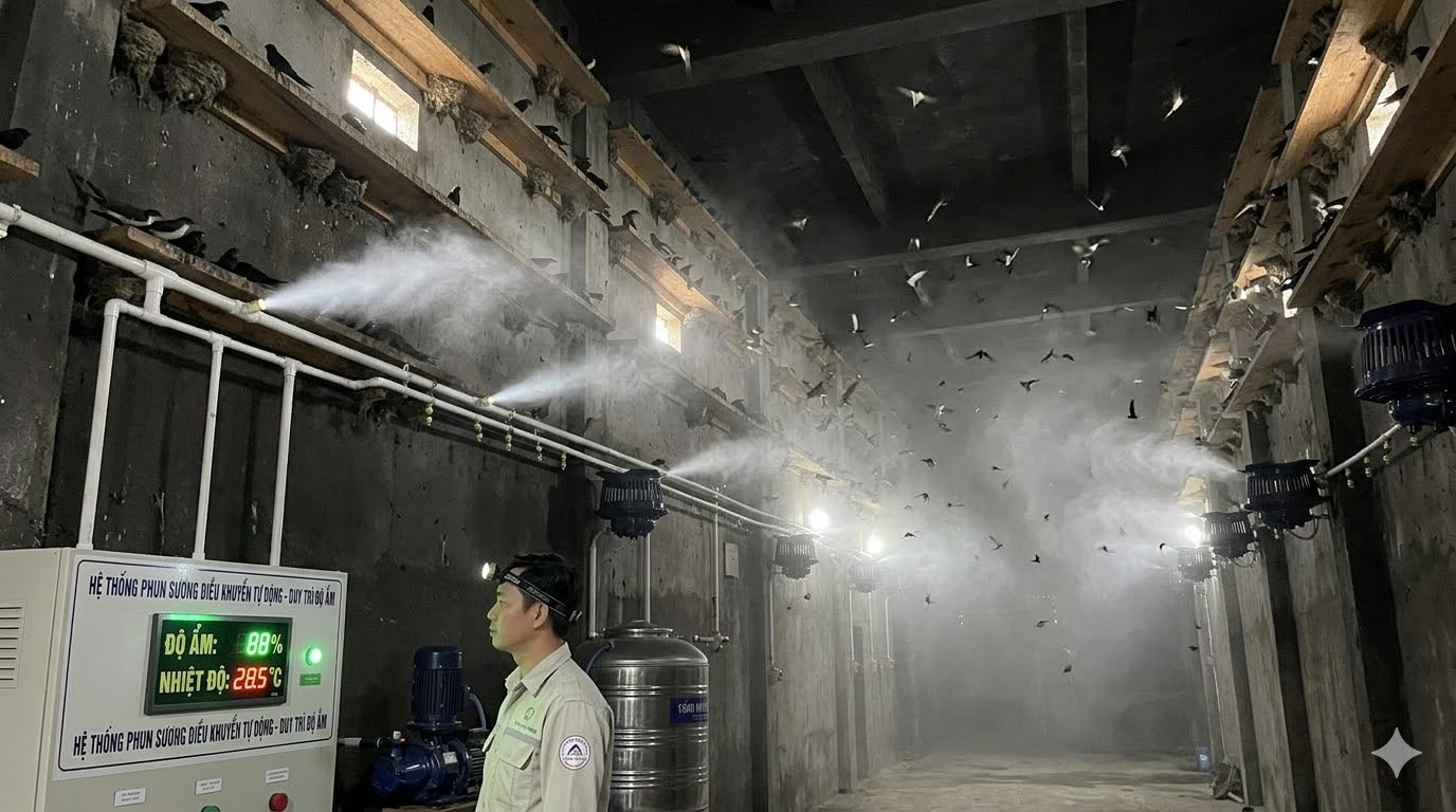 Hình 3: Hệ thống phun sương giúp duy trì độ ẩm cho nhà yến