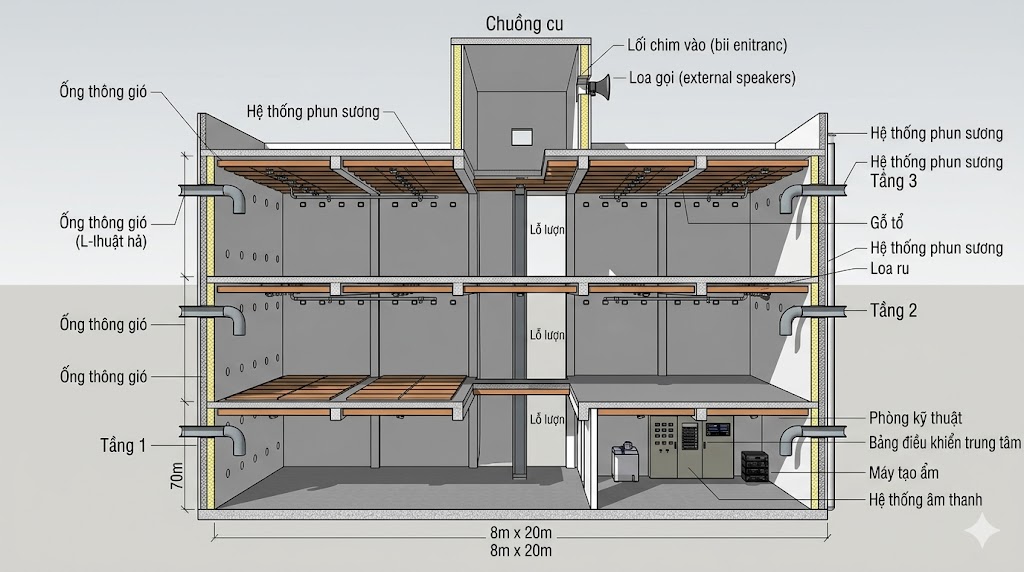 Hình 2: Thiết kế bên trong nhà yến đạt chuẩn kỹ thuật