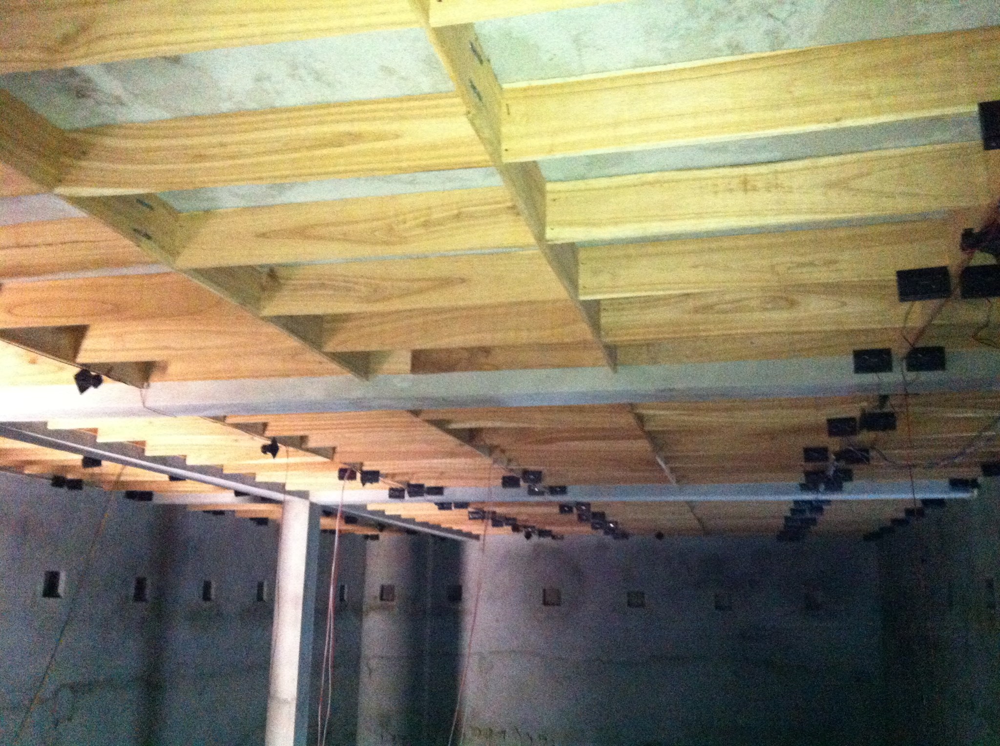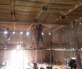 - Lắp panel PU hoặc bông khoáng sát trần, tường, kết hợp tấm tiêu âm