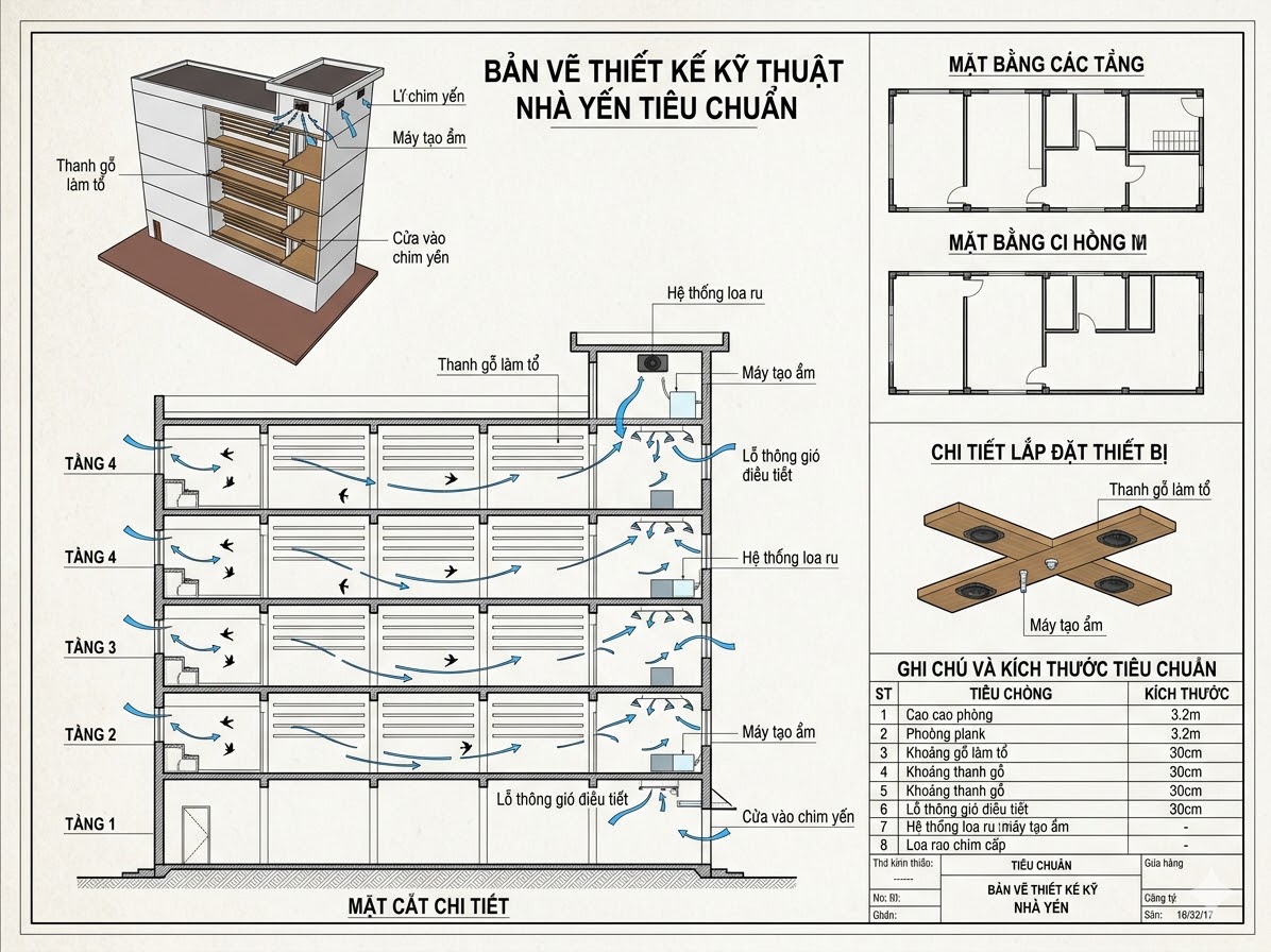 Hình 2: Bản vẽ thiết kế nhà yến tiêu chuẩn