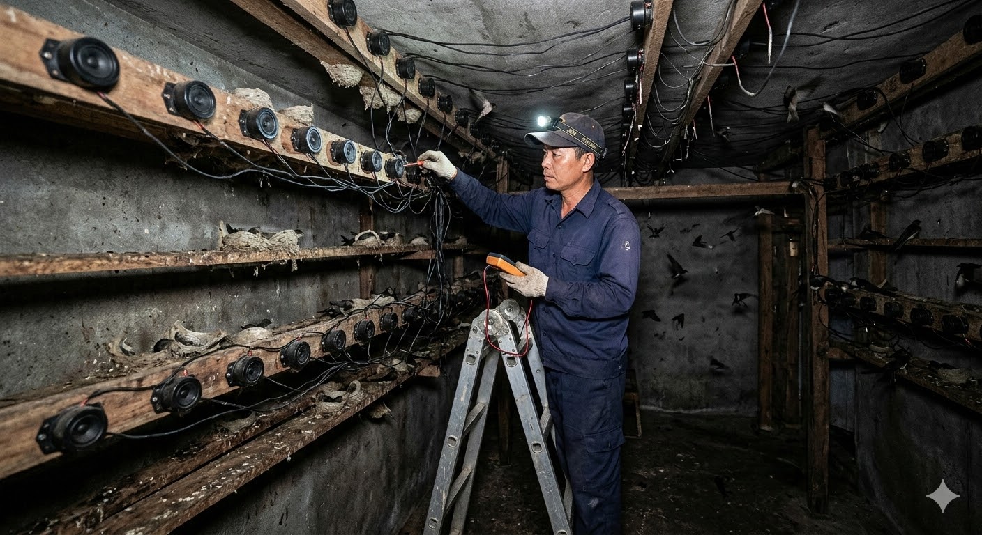 Đội ngũ kỹ thuật luôn cập nhật công nghệ dẫn dụ chim yến mới nhất, giúp công trình đạt hiệu quả cao.