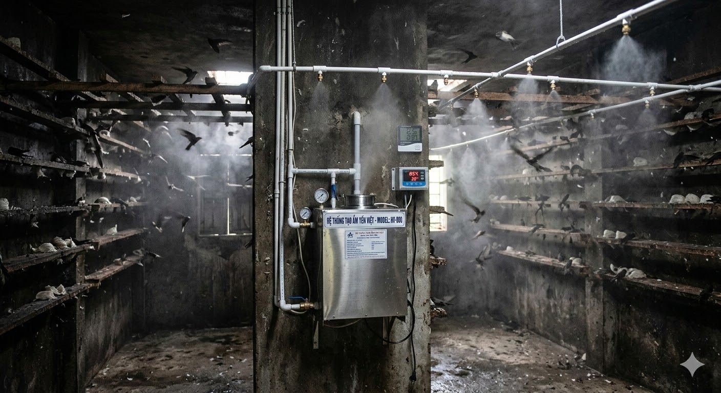 Hình 3: Hệ thống tạo ẩm trong nhà nuôi yến