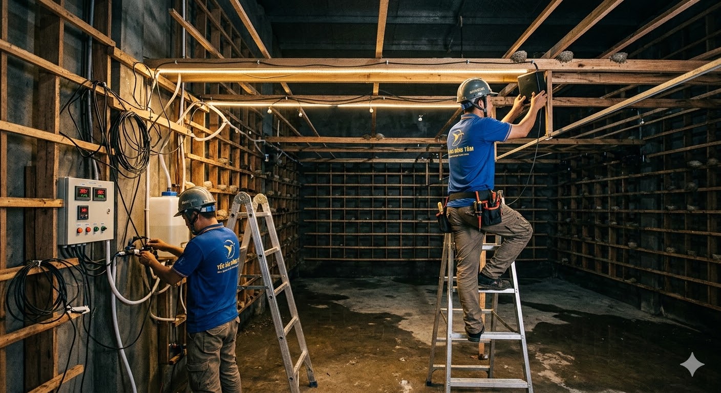 Hình 4: Lắp đặt hệ thống thiết bị trong nhà yến