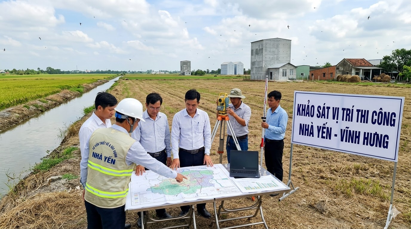 Hình 1: Khảo sát vị trí thi công nhà yến tại Vĩnh Hưng