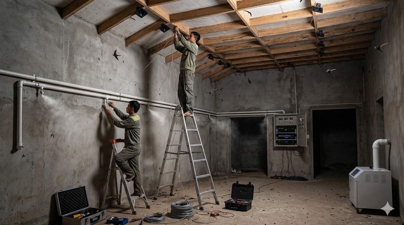 Hình 4: Lắp đặt hệ thống âm thanh và tạo ẩm cho nhà yến