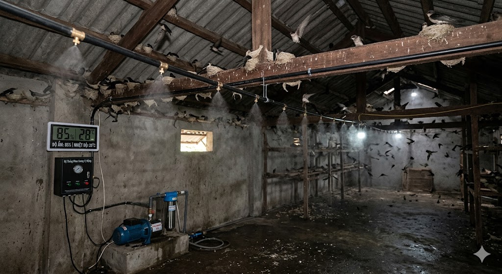 Hình 3: Hệ thống phun sương duy trì độ ẩm lý tưởng trong nhà yến