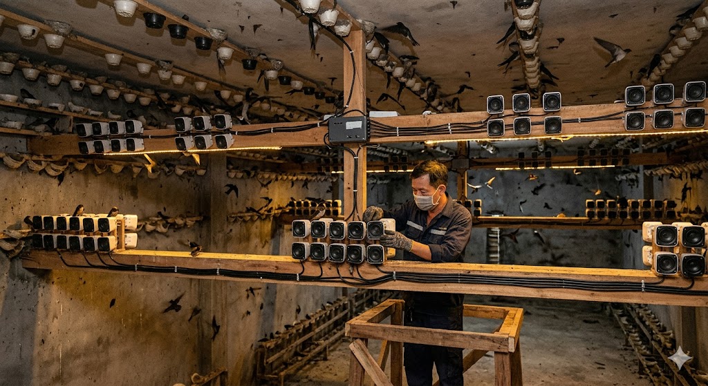 Hình 4: Hệ thống loa dẫn dụ chim yến bố trí khoa học trong nhà yến