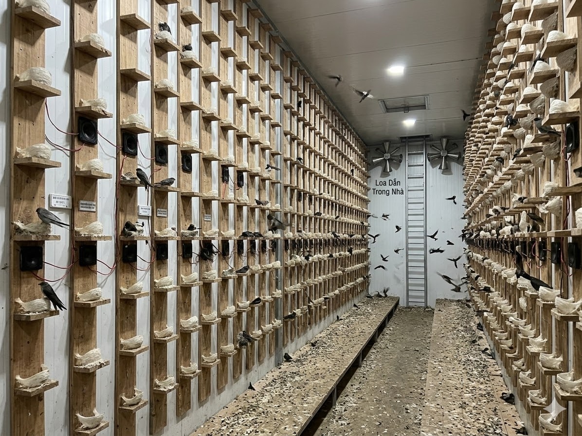 Bên trong nhà yến thường được chia thành nhiều phòng nhỏ nhằm tạo môi trường yên tĩnh và tối giống như hang động tự nhiên.