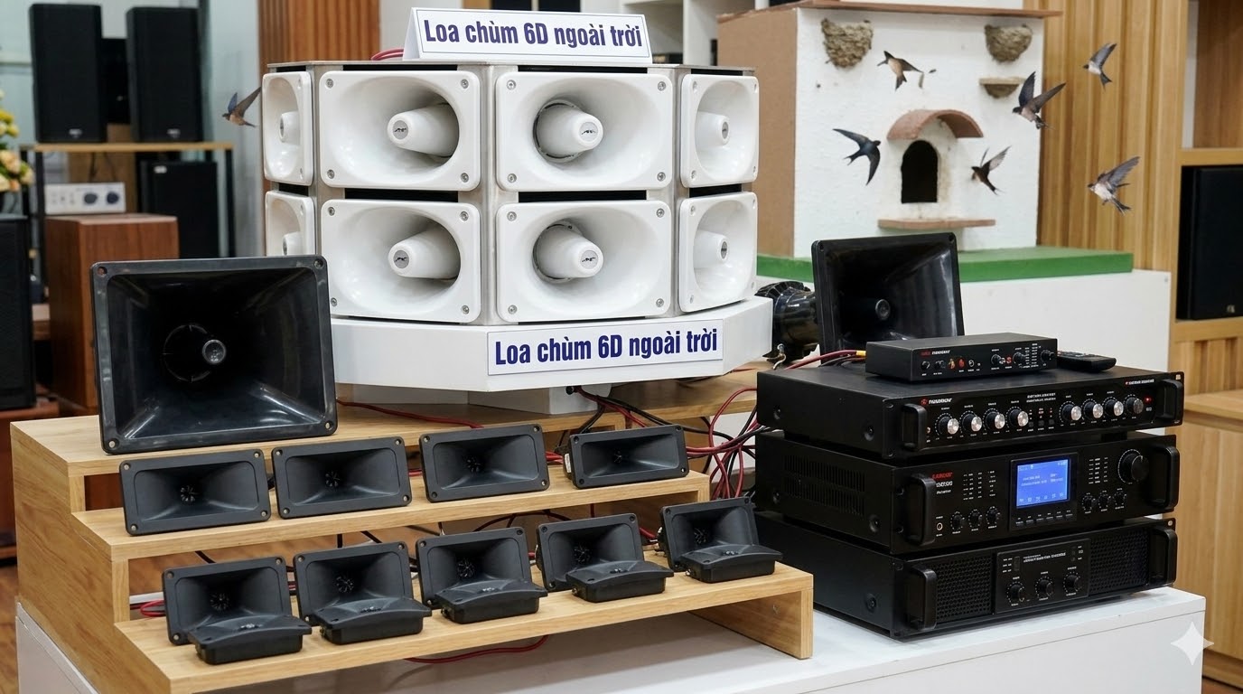 Hình 4: Hệ thống loa dẫn dụ chim yến chuyên dụng