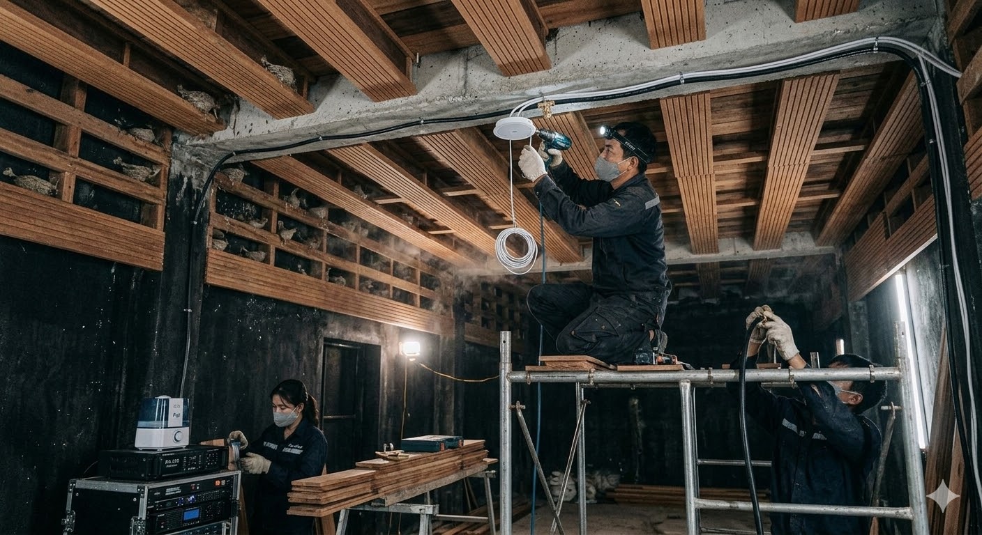Hình 3: Lắp đặt hệ thống âm thanh và tạo ẩm cho nhà yến